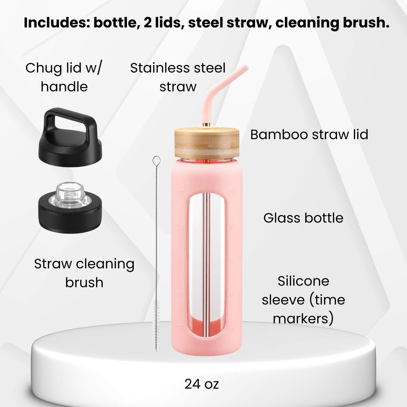 - 1 × Glass Water Bottle with Silicone Sleeve
